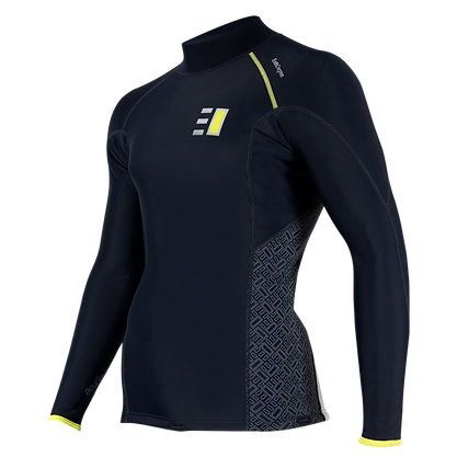 The Tundra in its development has been taken through its paces by test pilots across a range of sports; resulting in the best piece of multisport gear perfect for applications such as Kayak clothing, SUP clothing, Kite Surfing tops, and Dive Wetsuits. The Tundra’s performance comes from its material and design. The Anti-wind chill of 385gsm Fernotherm3 makes it perfect for above water paddle sport and soft-touch internal lining beats all competitors when worn below the water in sports such as Scuba Diving and Snorkeling. Form cut performance design and the unique silver back aesthetics encapsulate the high-tech performance capabilities of this unique top.